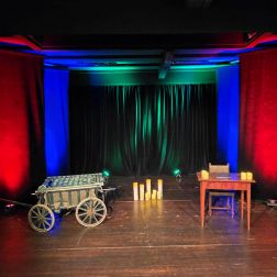 Der flexible Bühnenbereich beherbergt nicht nur die klassische Guckkastenbühne der Marionettenbühne Mottenkäfig, sondern bietet bei Bedarf auch eine freie Bühnenfläche von 7x4m für das Theater Fiesemadände im Mottenkäfig und Gastbühnen. Diese Im nationale und internationale Bühnen gastieren im Rahmen des Programmes „Internationales Figurentheater Pforzheim“ als Gäste im Figurentheater Mottenkäfig.